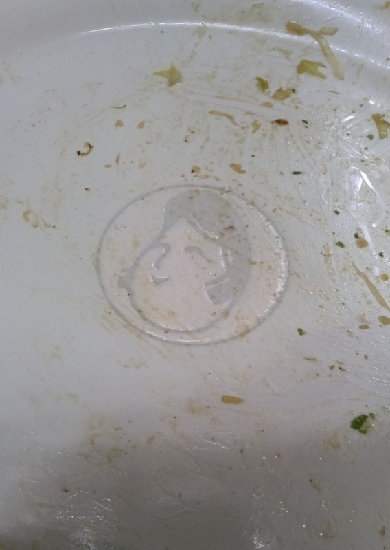 ↑食べ終わると、お皿のオタフクが微笑みます
